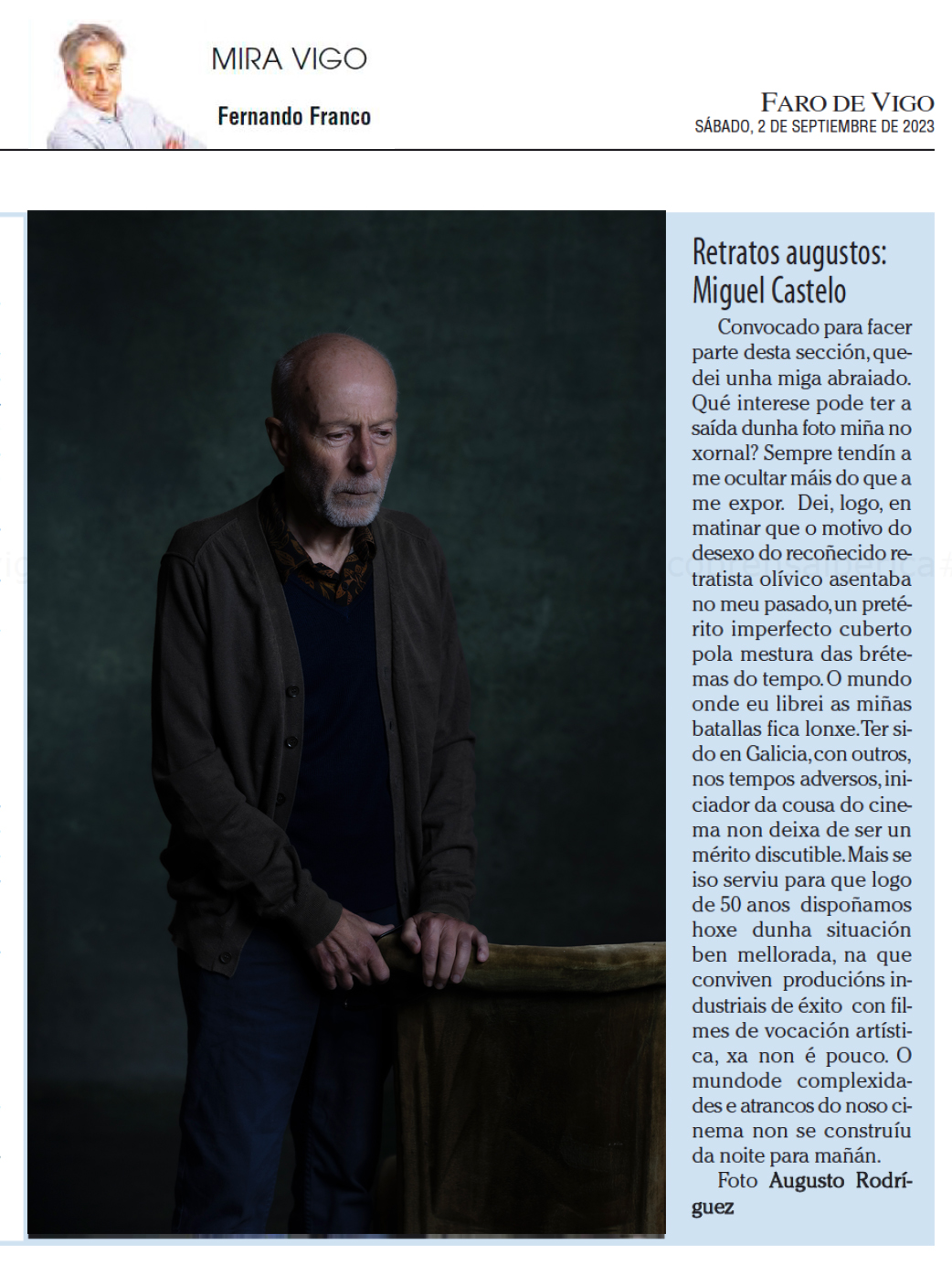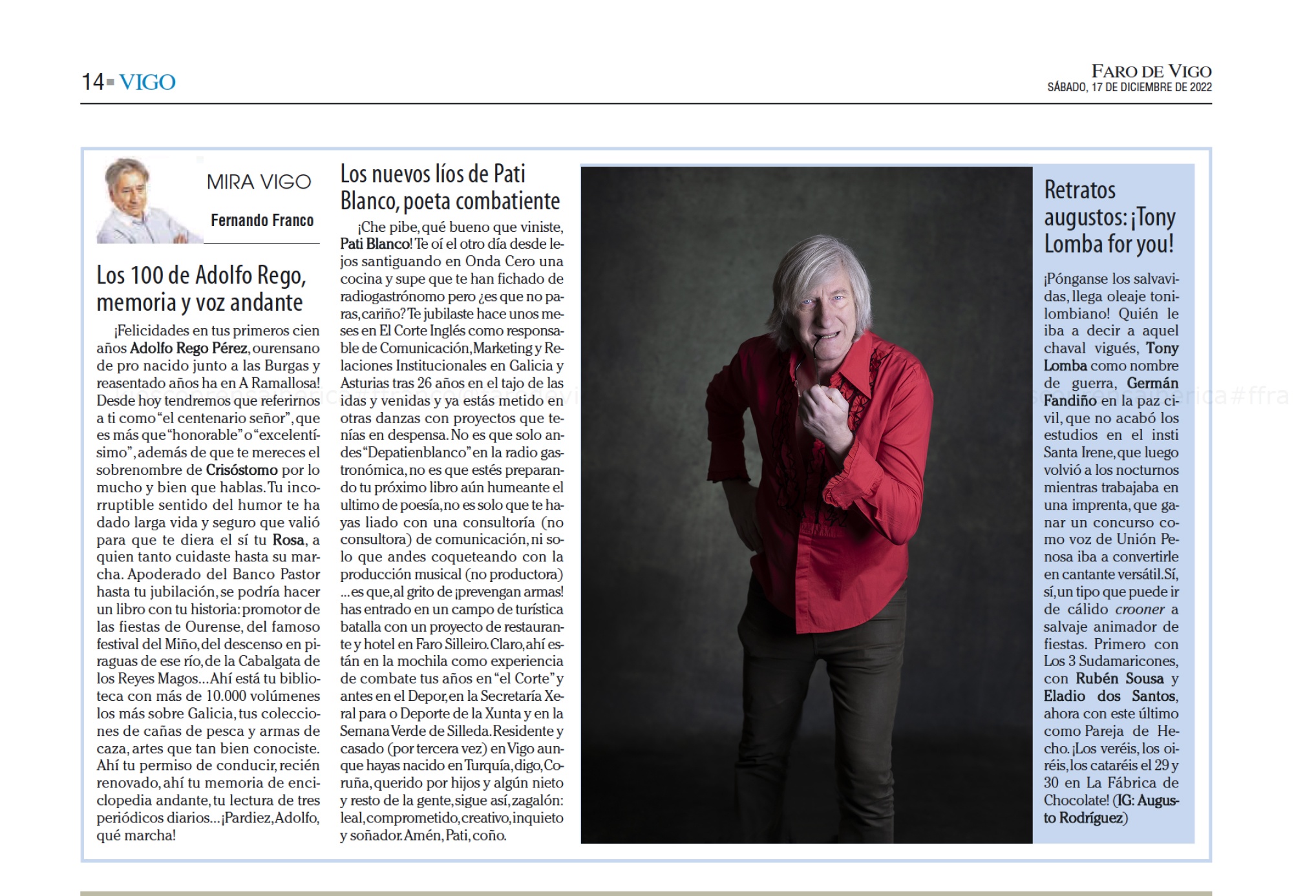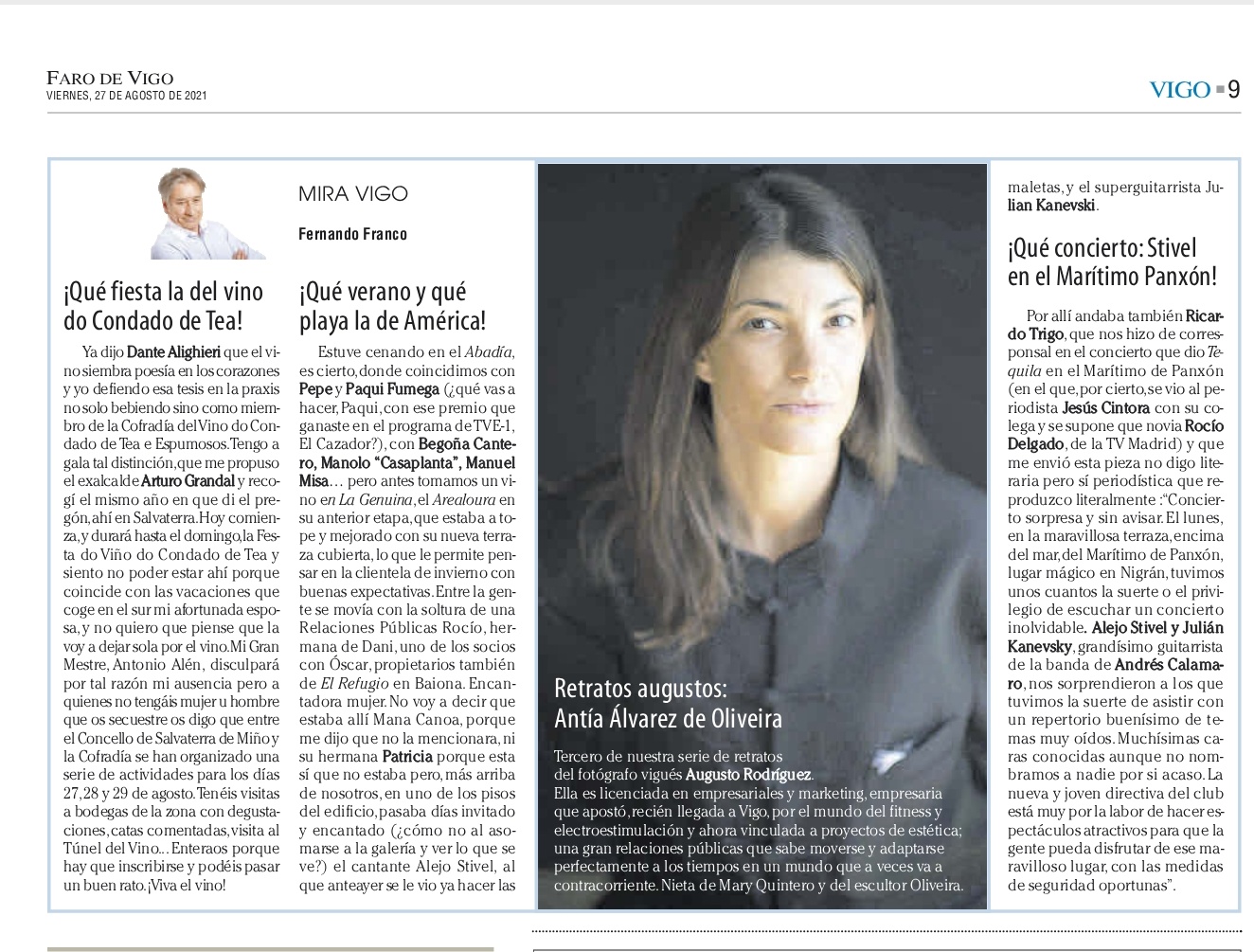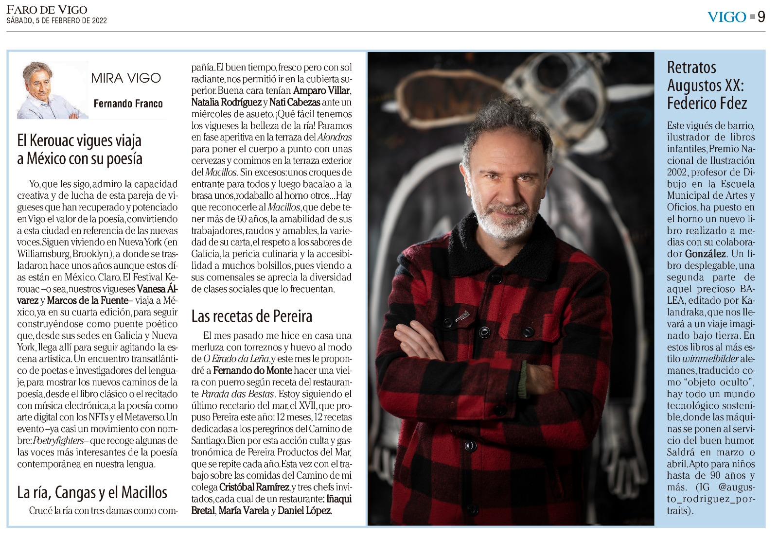 es una colaboración para Faro de Vigo la sección MIRA VIGO del periodista Fernando Franco en donde cada sábado publico un retratado vigués el nexo en común de es que todos tienen una historia tras de si