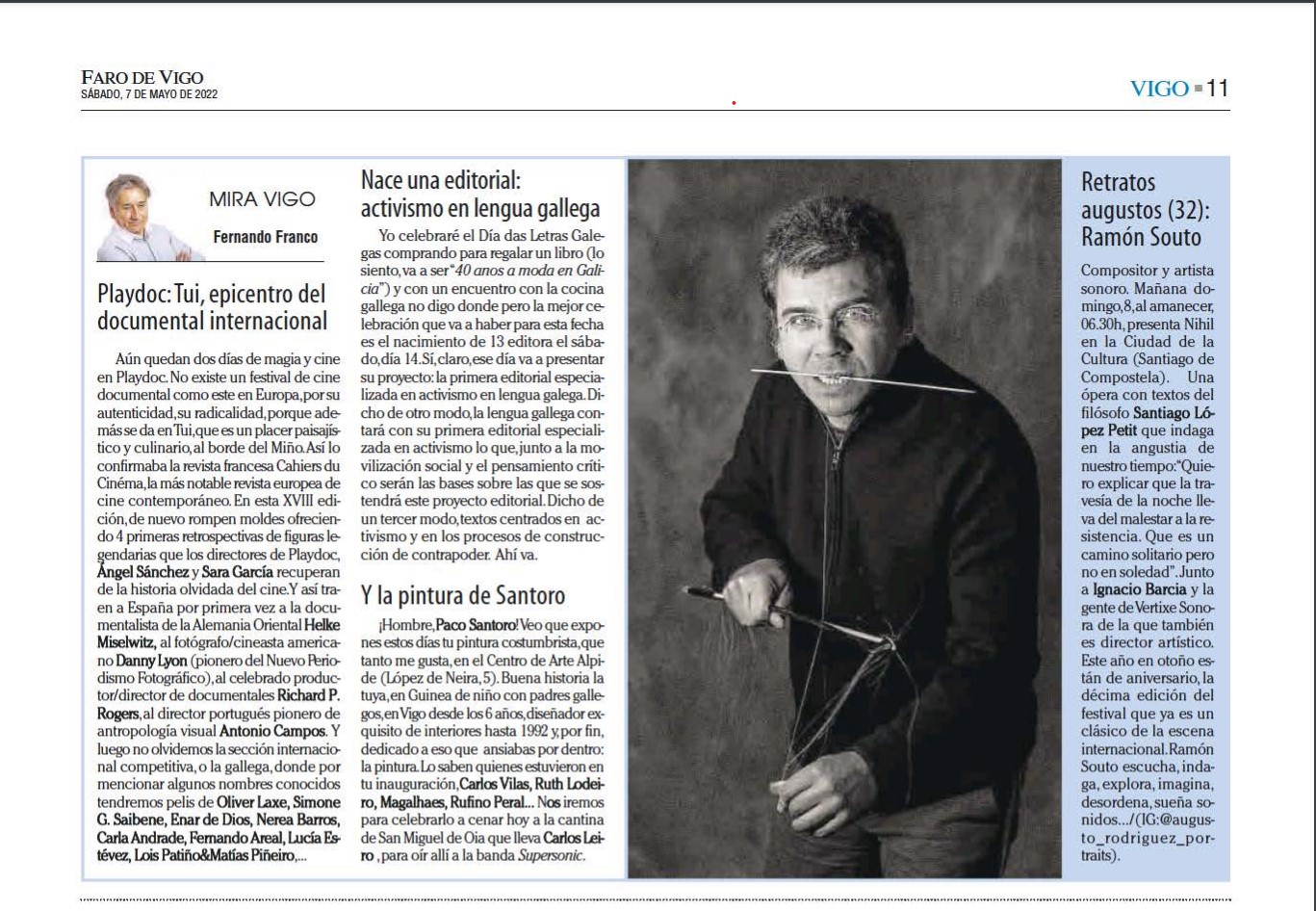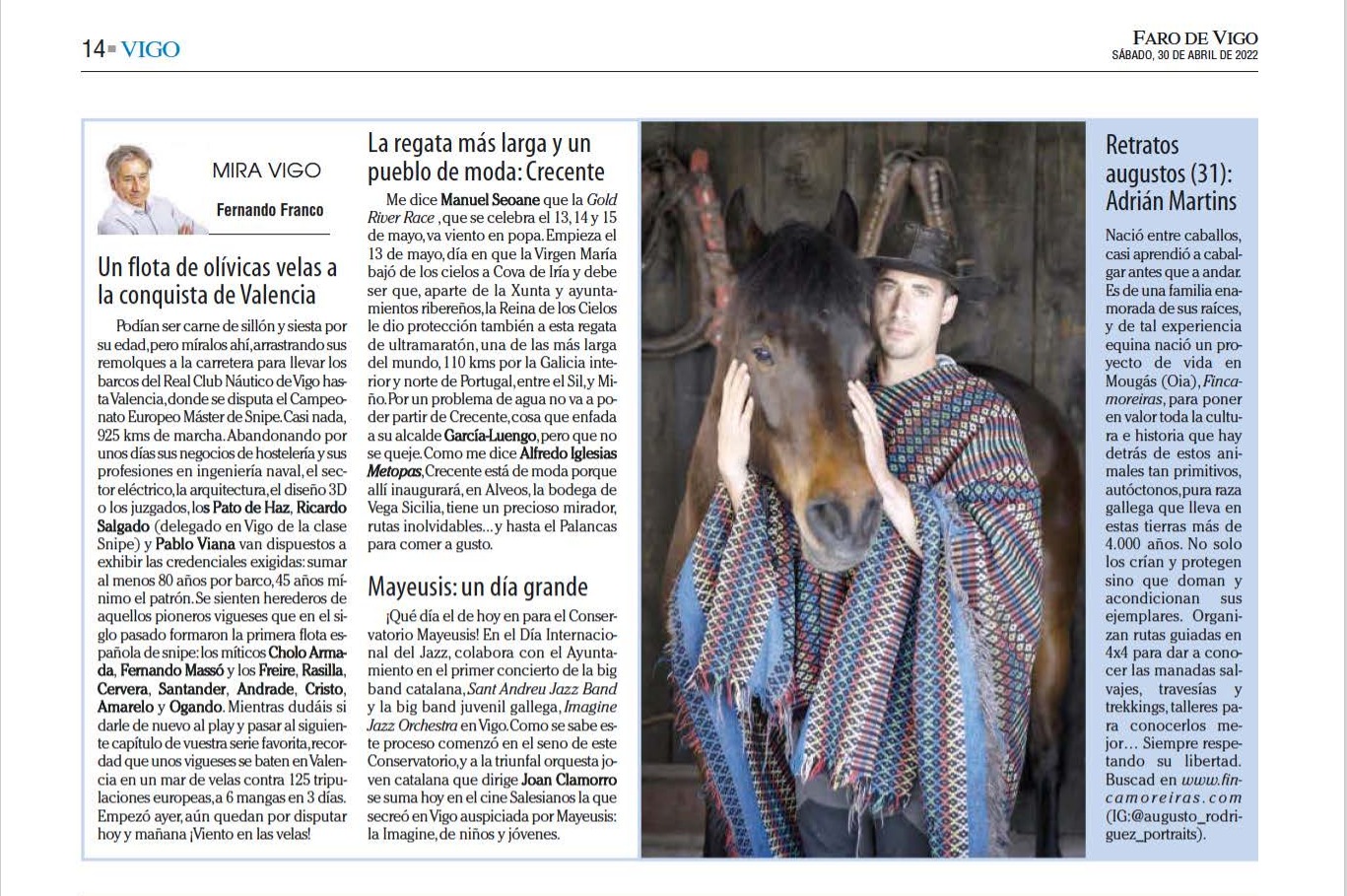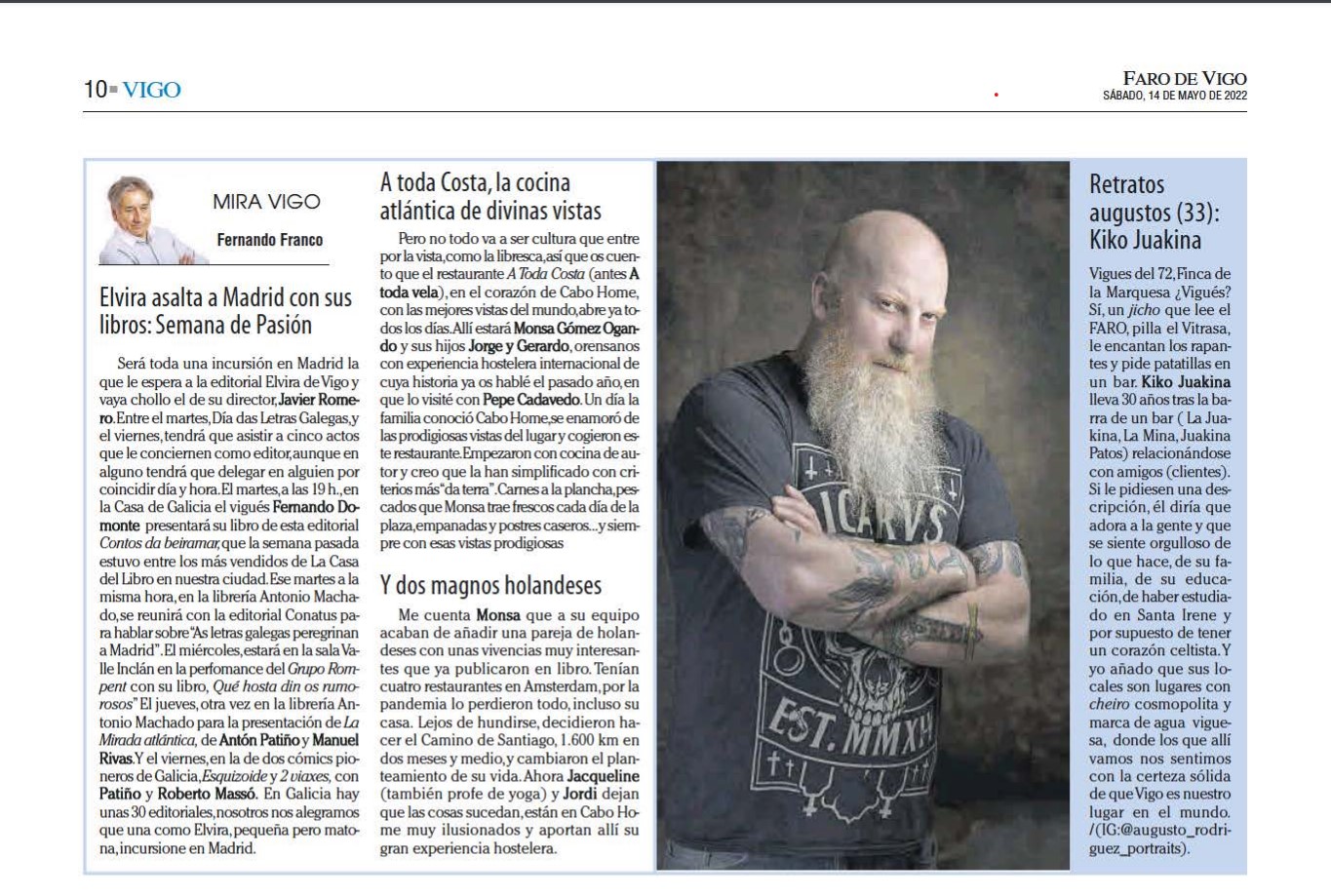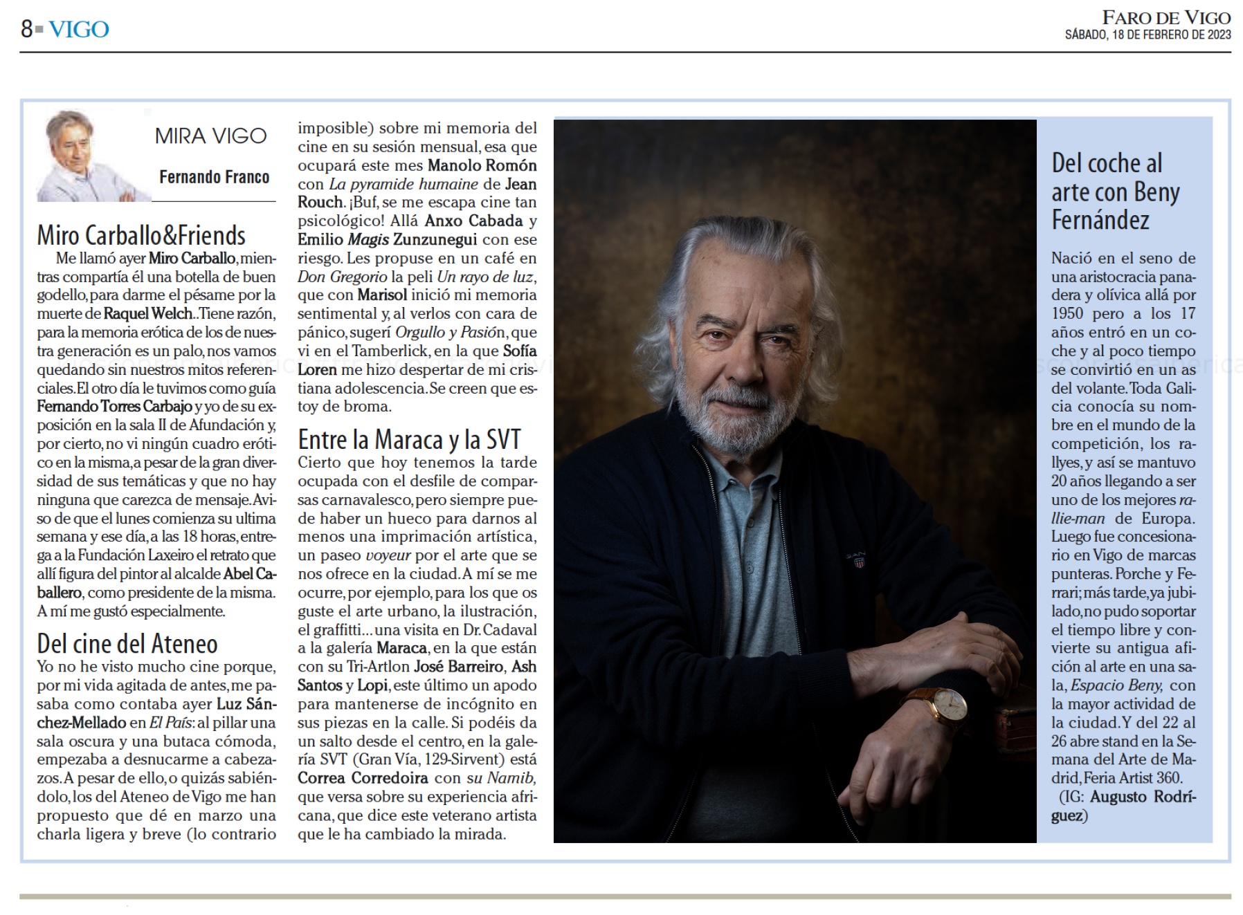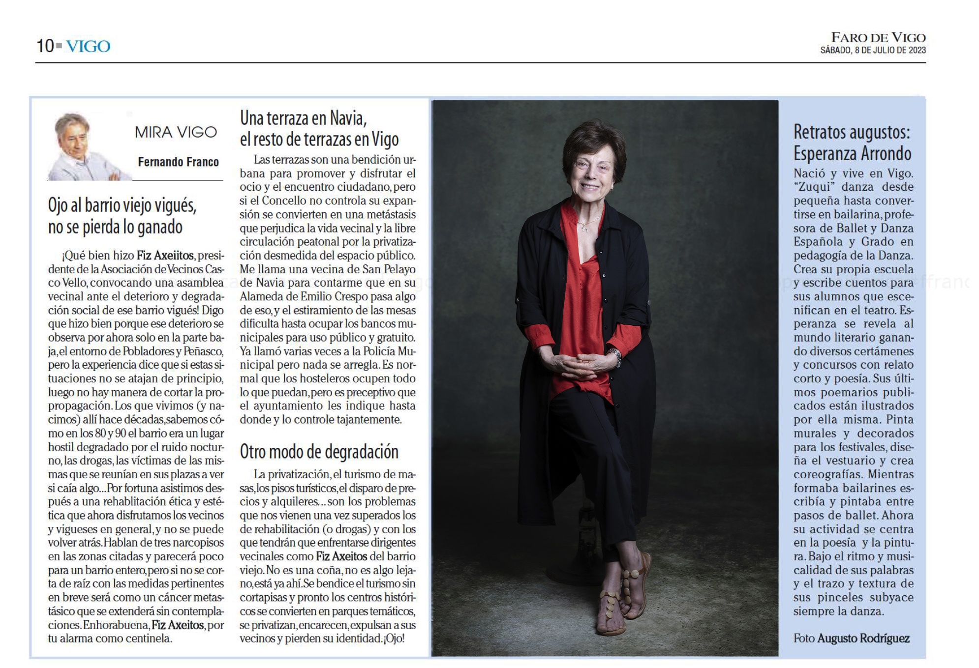 es una colaboración para Faro de Vigo la sección MIRA VIGO del periodista Fernando Franco en donde cada sábado publico un retratado vigués el nexo en común de es que todos tienen una historia tras de si